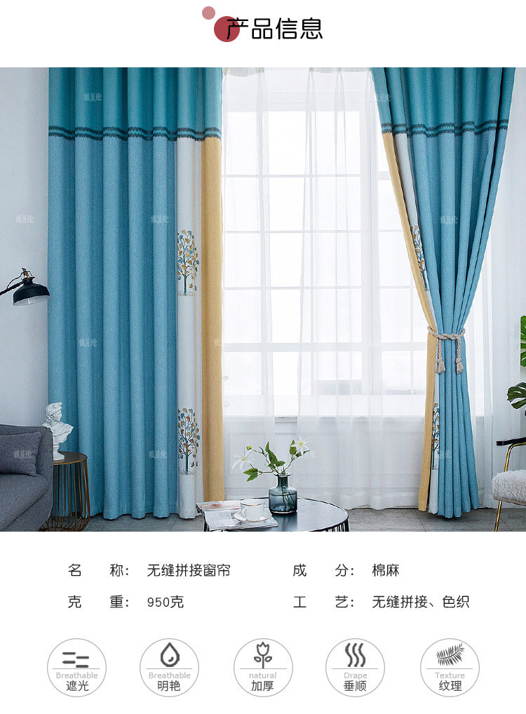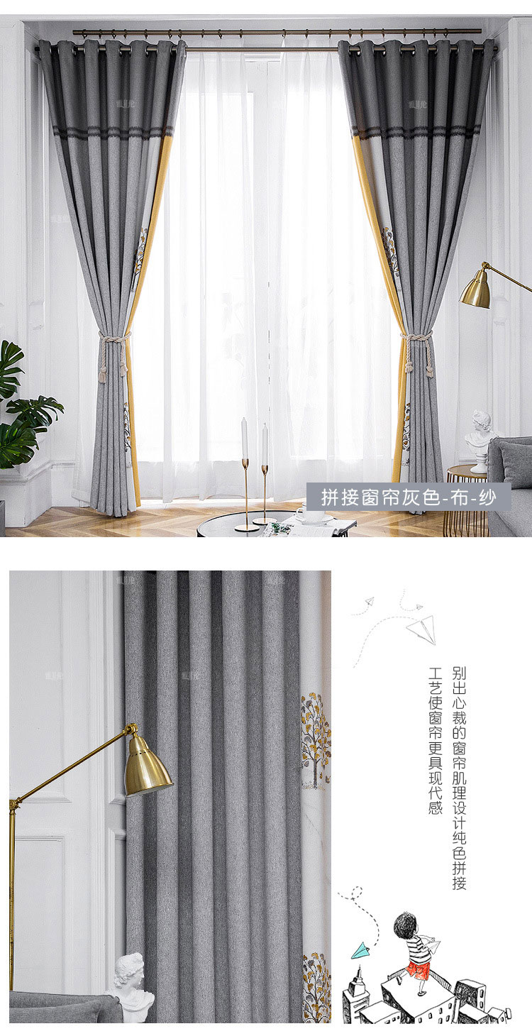雅菲倫モダン北欧風シムレスと天然素材のカータテン遮光オーダ寝室新中国型既制カーリングモテル
